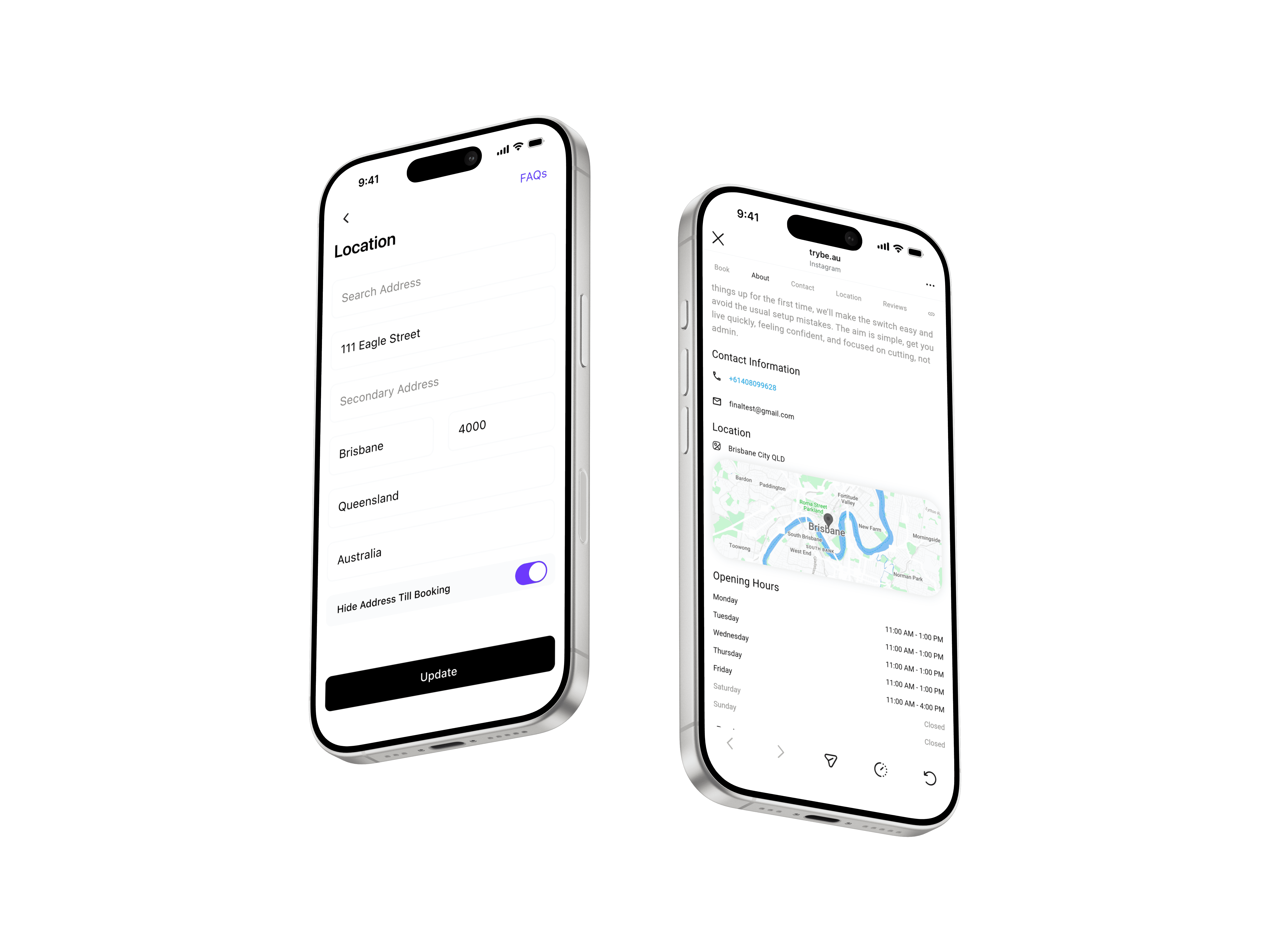 Your location is captured during sign-up to Trybe, allowing clients to clearly understand where their appointment will take place. To protect your privacy, Trybe includes safeguards such as hiding your full address until a booking has been confirmed.